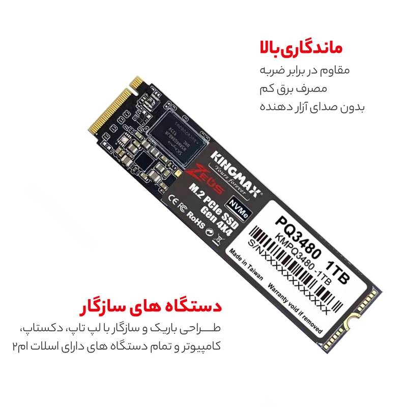اس اس دی اینترنال کینگ مکس مدل M.2 2280 PCIe NVMe Gen 3×4 ظرفیت 1 ترابایت