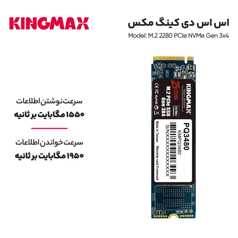 شرکت کینگ مکس در سال 2021 با تولید SSD های جدید، بعنوان پیشرو ترین شرکت در ضمینه تولید SSD نسل جدید در دنیا معرفی شده است. یکی از این محصولات M.2 2280 PCIe Gen 3×4 PQ3480 است که با سرعت حداکثر 2500 مگابایت در ثانیه باعث ایجاد تصاویر با وضوح دقیق و فوق العاده بالا، پردازش با سرعت بالا و انتقال داده با تأخیر کم می شود. که برای طراحی گرافیکی و مهندسی مناسب است. این SSD از چندین صفحه برای انجام وظیفه پشتیبانی می کند که از این قابلیت گیمرهای حرفه ای می توانند در چند ثانیه تعداد بازی ها گسترده ای را انتخاب کنند.