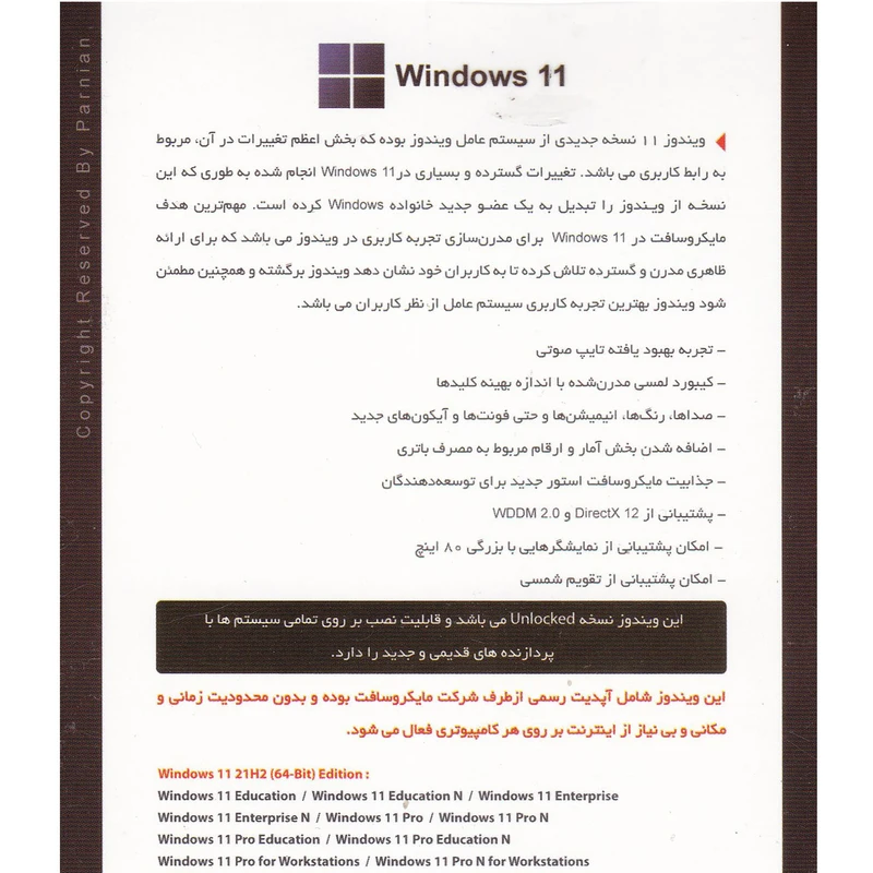 سیستم عامل ویندوز 11 Unlocked آپدیت 2022 نشر پرنیان