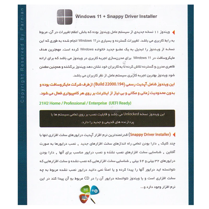 سیستم عامل Windows 11 21H2 Final + Snappy Driver Installer نشر پرنیان