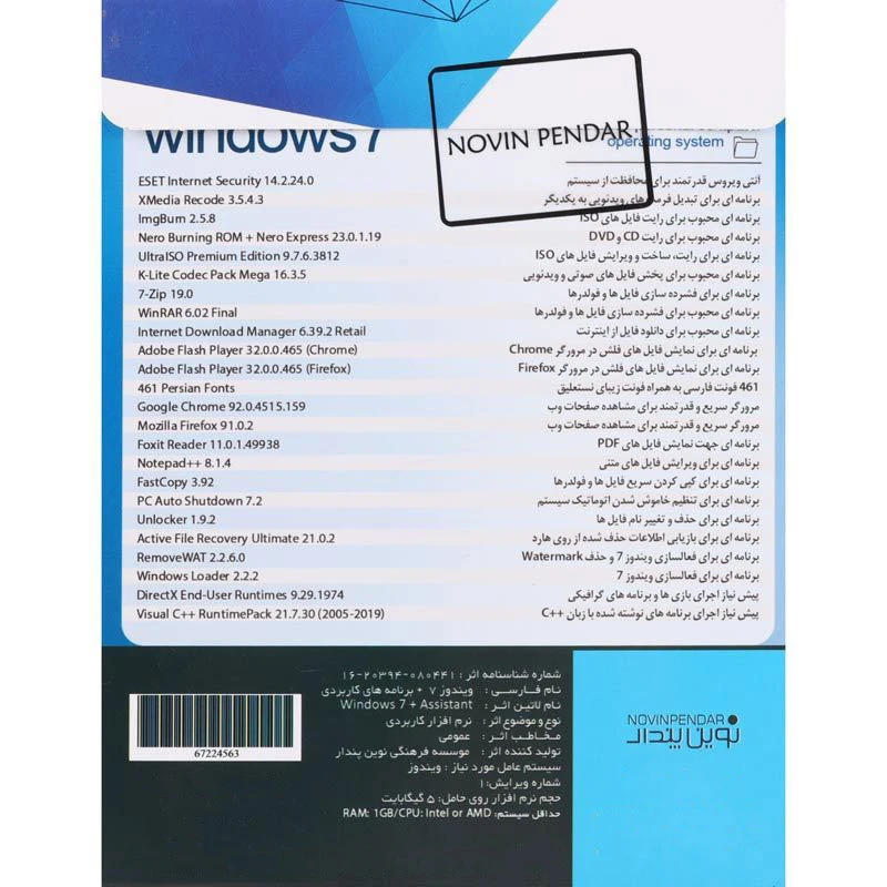 نسخه نهایی سیستم عامل ویندوز هفت نشر نوین پندار ، به همراه برنامه های کاربردی ، بدون نیاز به کرک شدن ، قابل نصب بر روی انواع لب تاپ و کامپیوتر می باشد .
