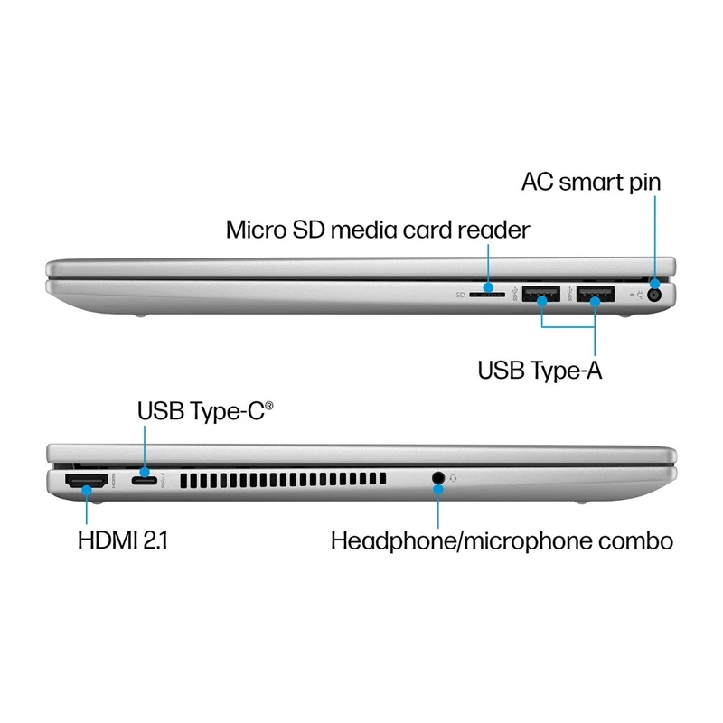 اچپی با استقرار انواع درگاههای ارتباطی، سعی کرده تا جای ممکن پاسخگوی نیاز طیف کاربران مبتدی تا حرفهای باشد. این لپتاپ از دو عدد پورت USB-A 3.2 با سرعت پنج گیگابیت بر ثانیه بههمراه یک عدد USB-C با پشتیبانی از شارژر، DisplayPort 1.4 و قابلیت HP Sleep and Charge برخوردار است. با حضور خروجی ویدیوی HDMI در کنار شیار کارت حافظه، جک ۳.۵ میلیمتری صدا و درگاه شارژ AC Smart Pin، بخش درگاههای ارتباطی این مدل تکمیل میشود؛ البته فناوریهای Wi-Fi 6E و بلوتوث 5.3 نیز وجه دیگری از ارتباطات این مدل هستند.