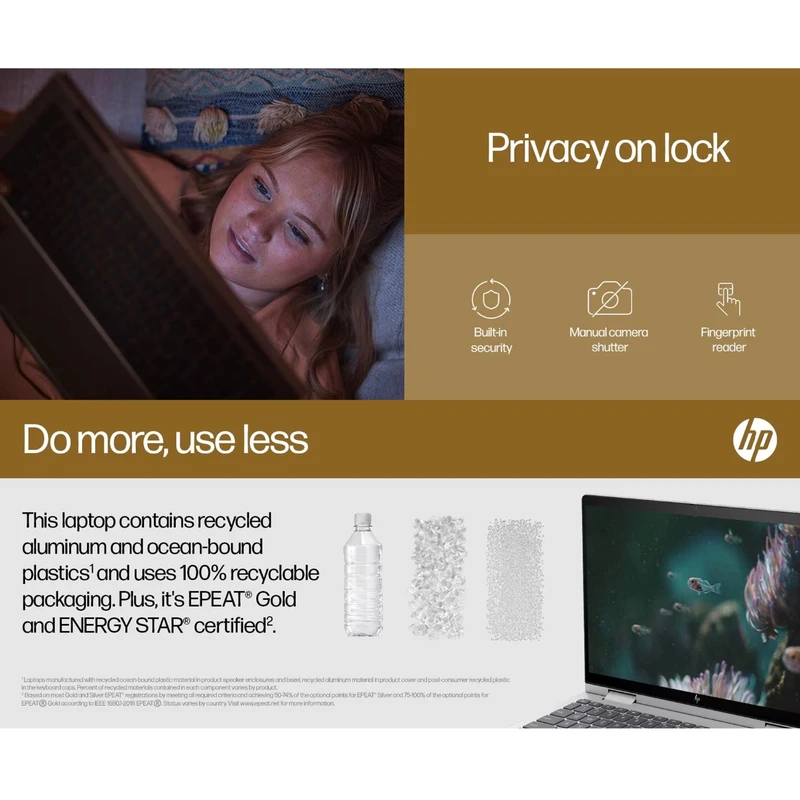 این برند از وبکم HP True Vision با وضوح پنج مگاپیکسلی، قابلیت کاهش نویز و میکروفونهای محیطی استریو استفاده کرده تا کیفیت بالا در برقراری تماسهای تصویری را تضمین کند. این وبکم از درپوش لنز هم بهرهمند شده تا از حریم خصوصی کاربر بیش از پیش حفاظت شود. در نهایت با بلندگوی استریوی ساخت Poly Studio و تکنولوژی HP Audio Boost، امکان شنیدن صدای فراگیر و با کیفیت با این لپتاپ فراهم شده است. در نهایت، حضور حسگر اثر انگشت علاوهبر افزایش امنیت، قابلیت قفلگشایی سریع لپتاپ را فراهم میکند.