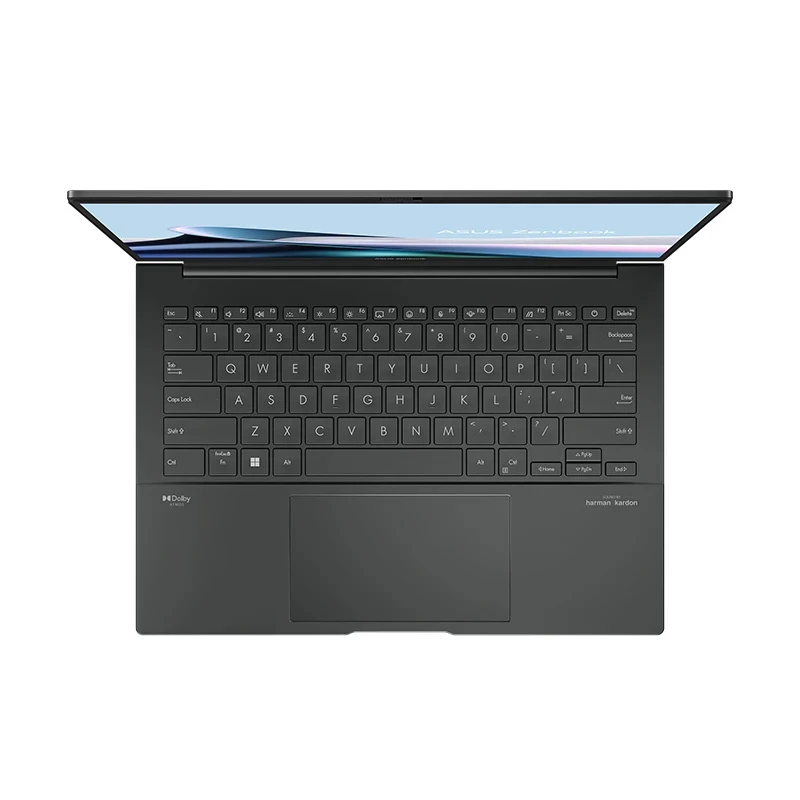 زیر کیبورد دستگاه نیز از تاچپد Precision استفاده شده تا با پشتیبانی از چند لمس، نیاز به استفاده از ماوس در انجام امور روزمره را کاهش دهد. ایسوس با همکاری برند معروف Harman/Kardon، بلندگوهای داخلی این لپتاپ را طوری طراحی کرده که حجم، رسایی و کیفیت صدا کاملا رضایتبخش باشد. وبکم ZenBook 14 OLED با رزولوشن Full HD 1080p از قابلیتهای کاربردی مانند دید در شب، تشخیص چهره Windows Hello و شاتر حریم خصوصی برخوردار است.