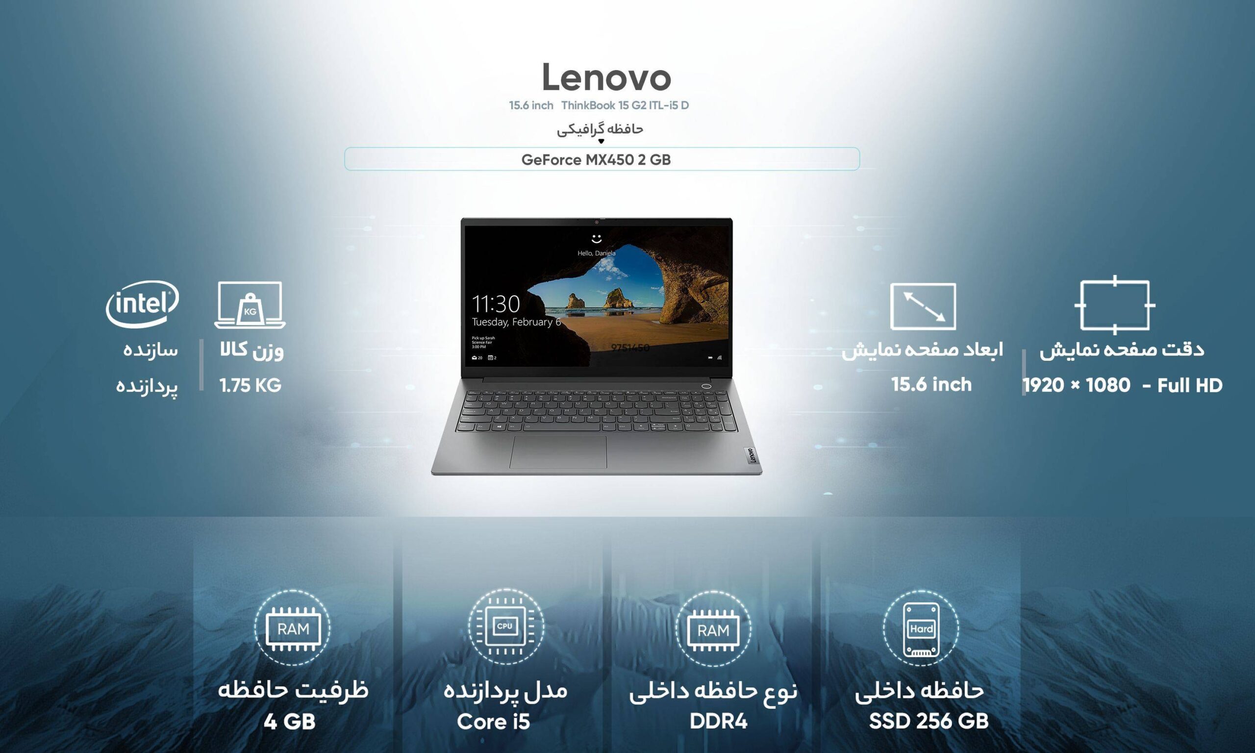 لپ تاپ 15.6 اینچی لنوو مدل ThinkBook 15 G2 ITL-i5 1135G7 4GB 256SSD MX450