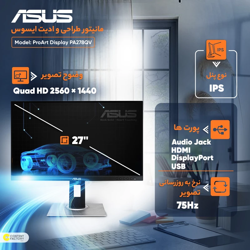مانیتور ایسوس مدل ProArt Display PA278QV سایز 27 اینچ