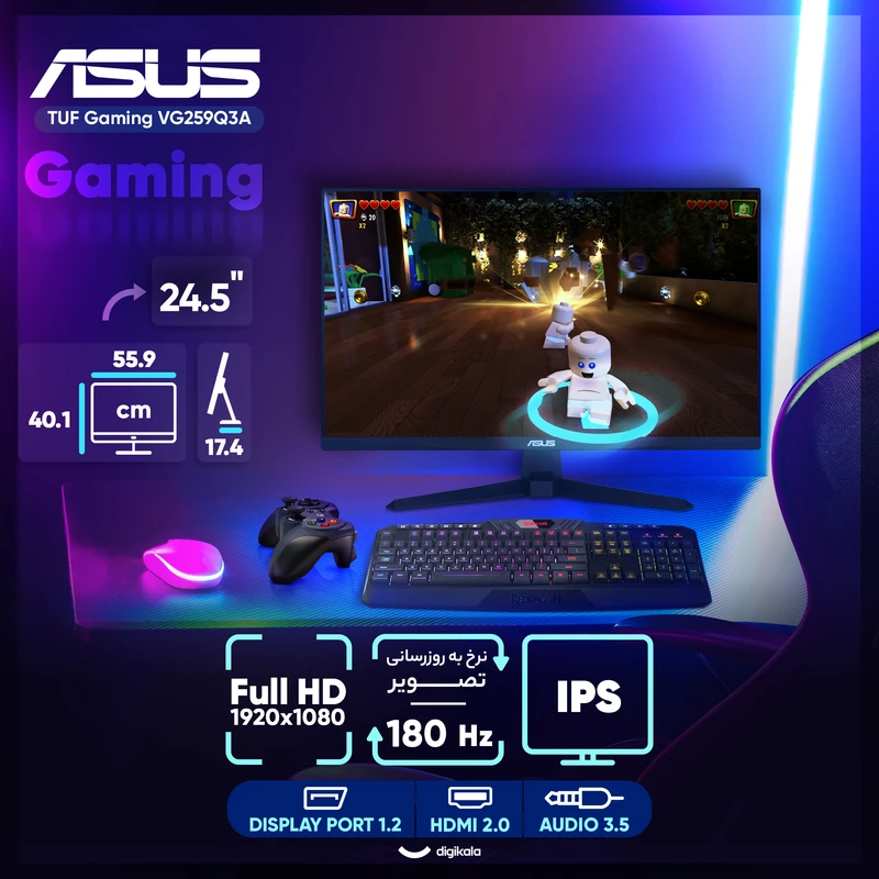مانیتور ASUS TUF Gaming VG259Q3A ترکیبی هوشمندانه از ویژگیهای گیمینگ و قیمت منطقی ارائه میدهد. نرخ بروزرسانی بالا، زمان پاسخ سریع و پشتیبانی از VRR آن را به گزینهای جذاب برای گیمرهایی تبدیل کرده که به دنبال تجربه روان و بدون تأخیر هستند. در عین حال طراحی ساده اما مدرن، مصرف برق پایین و امکانات نرمافزاری متعدد ارزش خرید آن را بیشتر میکند.
