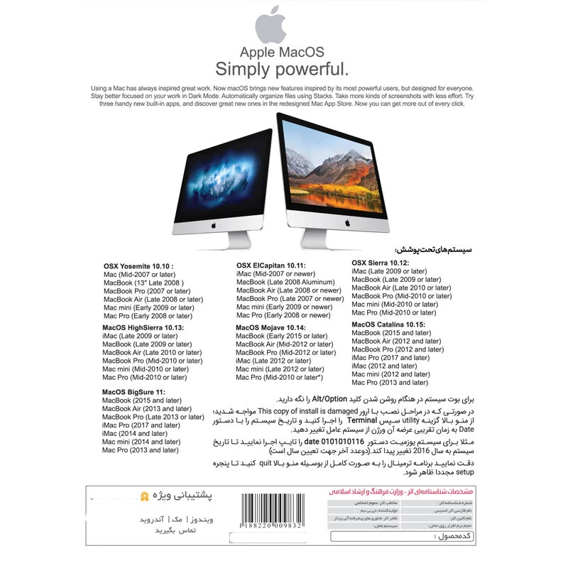 با توجه به دستگاه های مختلف و سال ساخت آنها , شرکت اپل قابلیت نصب تا ورژن معینی از سیستم عامل مک را بر روی آنها در نظر میگیرد از این رو مجموعه سیستم عاملهای مک داخل یک فلش بوت قرار گرفته تا با توجه به سال و مدل دستگاه مک خود نسخه مناسب را بر روی آن نصب کنید.