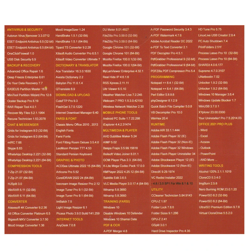 مجموعه ابزارهای کاربردی ویندوز شامل نسخه نهایی و کامل نرم افزارهای CorelDRAW 2021,OFFICE 2021, ACDSee2022 , …… fugh,i اتوران اختصاصی به همراه فیلم آموزشی نصب و فعال سازی |
