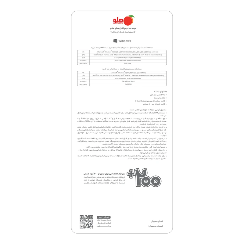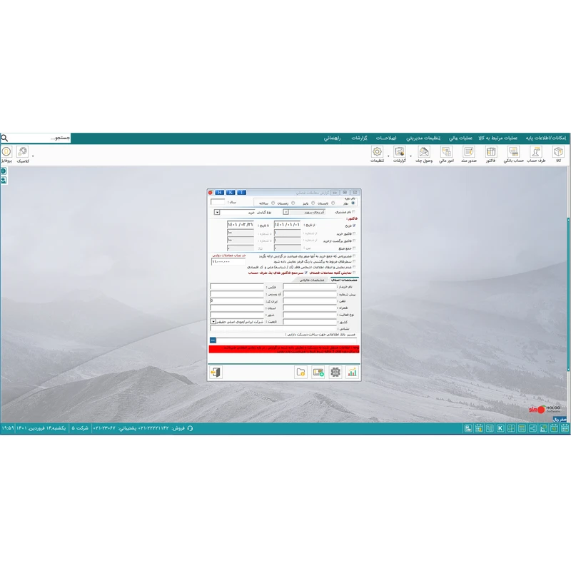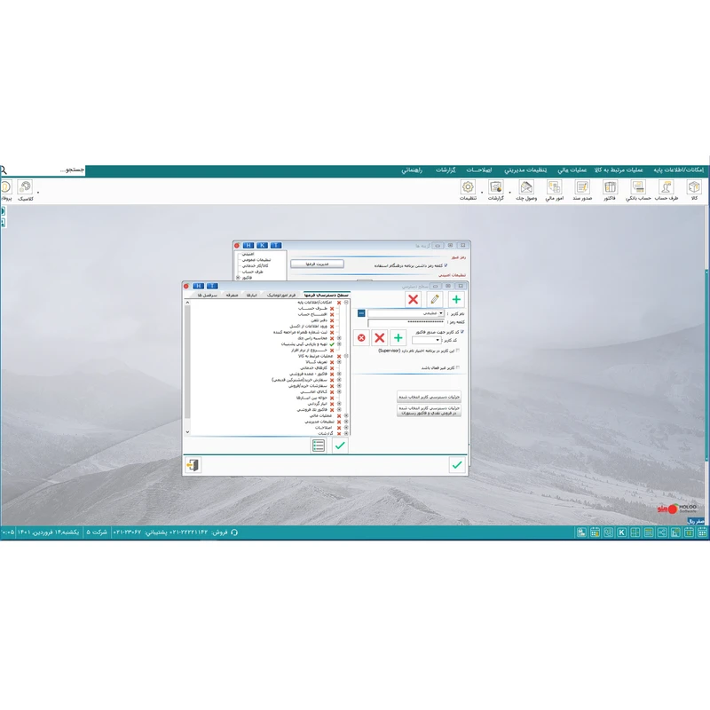 لطفا دقت فرمایید امکانات کامل مشروحه فوق در نسخه جامع نرم افزار موجود بوده و شما با مراجعه به قسمت ویژگیهای هر نسخه می توانید از ریز امکانات آن مطلع شوید، ضمنا نسخه پایه امکان اضافه نمودن هیچ امکانی را ندارد.