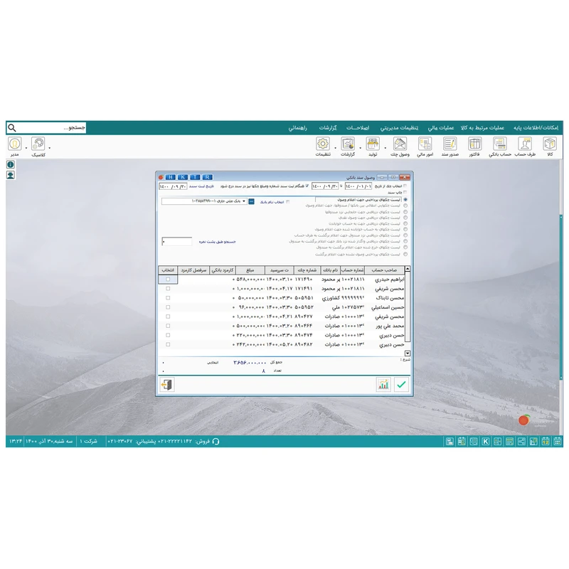 این نرم‌افزار به شما امکان می‌دهد تا در کمترین زمان ممکن، گزارش‌های دقیق و لحظه به لحظه‌ای از کالاها، اشخاص، چک و اسناد ثبت‌شده تهیه کنید.