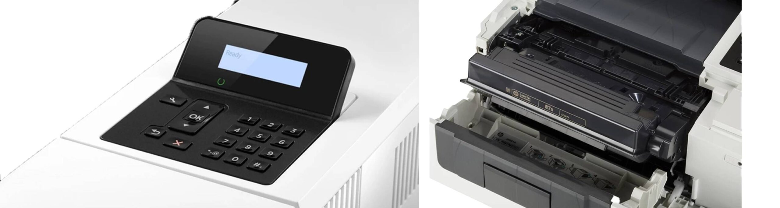 سرعت چاپ سیاه‌ و ‌سفید این دستگاه تا ۴۵ برگ در دقیقه می‌رسد، رقمی که برای حجم‌های زیاد چاپ در دفاتر یا مراکز آموزشی بسیار رضایت‌بخش است. رزولوشن استاندارد چاپ ۶۰۰x۶۰۰ dpi بوده، اما اچ‌پی با به‌کارگیری فناوری‌های اختصاصی HP FastRes 1200 و HP ProRes 1200 توانسته وضوح بیشتری در جزئیات متن و گرافیک‌های ساده ایجاد کند. این فناوری‌ها باعث می‌شوند نوشته‌ها شفاف‌تر، خطوط دقیق‌تر و نمودارها و لوگی‌ها با کیفیت بالاتری روی کاغذ ظاهر شوند. قابلیت چاپ دورو خودکار (Duplex Printing) یک مزیت مهم این مدل است، که علاوه بر صرفه‌جویی در مصرف کاغذ، زمان و هزینه را کاهش می‌دهد. M501dn علاوه بر درگاه USB-A برای اتصال به کامپیوتر، به پورت Ethernet مجهز است که اتصال مستقیم به شبکه را امکان‌پذیر می‌کند. این قابلیت برای دفاتر با چند کاربر، به معنای دسترسی هم‌زمان و بدون نیاز به جابه‌جایی فایل‌ها است. پشتیبانی از چاپ موبایلی از طریق فناوری و برنامه‌های HP ePrint، Apple AirPrint، Mopria-certified نیز امکان چاپ اسناد مستقیم از تلفن همراه یا تبلت را فراهم می‌کند. هرچند این مدل اتصال بی‌سیم داخلی (Wi-Fi onboard) ندارد، اما امکان اتصال به موبایل از طریق زیرساخت شبکه یا روتر وجود دارد، که با استفاده از امکانات نرم‌افزاری یادشده کامل می‌شود.