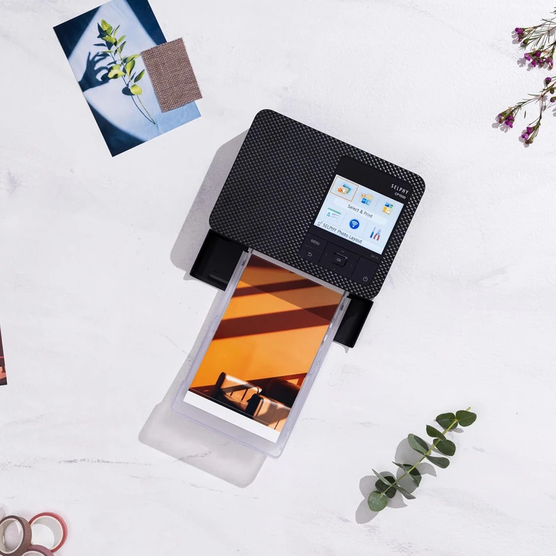 ابعاد ۱۸.۲ × ۵.۷۶ × ۱۳.۳ سانتیمتری و وزن تنها ۸۵۰ گرمی این پرینتر باعث شده که حمل و جابهجایی آن بدون مشکل انجام شود. بدنه از پلاستیک مقاوم و سبک ساخته شده و خطوط نرم و طراحی مینیمال، ظاهری مدرن به آن داده است. نمایشگر رنگی کوچک در بخش فوقانی، امکان مشاهده وضعیت و کنترل تنظیمات را بهراحتی فراهم میکند. نحوه نمایش وضعیت نیز بهصورت بصری و شفاف طراحی شده تا کاربر بدون نیاز به مطالعه دستورالعملهای پیچیده بتواند فرآیند چاپ را مدیریت کند. رنگآمیزی ساده ولی شیک این مدل نیز باعث میشود در هر محیط خانگی یا کاری جلوه مناسبی داشته باشد. برخلاف پرینترهای جوهرافشان مرسوم، این دستگاه از فناوری چاپ سابلیمیشن حرارتی بهره میبرد که رنگ را بهصورت تدریجی و مداوم بر سطح کاغذ منتقل میکند. این روش امکان تولید تا ۱۶.۷ میلیون رنگ را فراهم ساخته و عکسهایی با گرادیان نرم و جزئیات دقیق ارائه میکند. با رزولوشن ۳۰۰ × ۳۰۰ پیکسل و پوشش سطحی محافظ، تصاویر در برابر آب، لکه و محوشدن مقاوم میشوند. این ترکیب کیفیت و دوام باعث شده این مدل بهویژه برای چاپ عکسهای یادگاری، آلبوم خانوادگی و تصاویر مناسب قاب بسیار مناسب باشد.