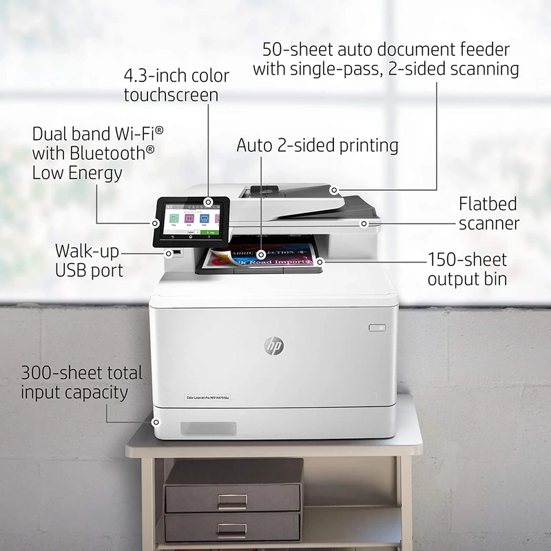 پرینتر «HP Color LaserJet Pro MFPM479dw» ازجمله پرینترهای لیزری رنگی شرکت « اچ پی « (HP) است. این دستگاه در کنار قابلیت چاپ رنگی ، میتواند اسناد را به طور رنگی کپی، اسکن کند که البته چاپ آنها را به شکل دورو نیز انجام میدهد، شایان ذکر است امکان اسکن اسناد یک رو و چاپ همان اسناد به شکل دورو نیز از خصوصیات ویژه این چاپگر میباشد. همچنین تمامی موبایلها و تبلتهای اپل ، اندرویدی و .. میتوانند بسهولت به آن متصل شوند و اسناد مورد نیاز را پرینت کنند، علاوه بر آن امکان اتصال USB FLASH وچاپ فایلها از روی فلش و اسکن مدارک و ذخیره روی فلش را داراست، از همینرو یکی از قلدرهای همهفنحریف حوزهی پرینترها محسوب میشود. این محصول به یک سینی 250 برگی و یک سینی چند منظورهی 50 برگی مجهز شده است؛ این دو سینی کاغذ میتوانند نیازهای یک دفتر اداری با حجم کاری متوسط را تامین کنند، همچنین نمایشگر بزرگ رنگی لمسی این دستگاه امکان استفاده آسانتر از دستگاه و بکارگیری اپلیکیشنهای فوق العاده جالب موجود در دستگاه را براحتی میسر میسازد. مدل MFPM479dw رزولوشن چاپی 600 × 600 dpi دارد که با تکنیک Enhanced میتواند تا رزلوشن 38400× 600 idp نیز چاپ کند ؛ با این رزولوشن، اسناد و تصاویر با بالاترین کیفیت لیزری چاپ میشوند. چاپ رنگی این دستگاه همانند دیگر پرینترهای لیزری، برای چاپ بروشور و چارتها مناسب است و برای چاپ عکس پیشنهاد نمیشود. این دستگاه به قابلیت چاپ دورو مجهز شده است که هم در مصرف کاغذ هم در زمان انجام وظایف محوله، باعث صرفه جویی بزرگی میگردد. اسکنر قوی این پرینتر شرکت اچ پی سند را با سرعت 29 صفحه در دقیقه اسکن میکند که کاربر میتواند اسناد را باکیفیت قابل ملاحظه 1200dpi x 1200 اپتیکال و زمان بسیار کوتاه به فایل دیجیتالی تبدیل کند. مجهز شدن این دستگاه به اسکنر، قابلیت کپی را نیز فراهم کرده است؛ مدل Color LaserJet Pro MFPM479dw میتواند اسناد را با رزولوشن 600 × 600 dpi و با سرعت تا 27 برگ دقیقه کپی کند. اتصالات این پرینتر چندکاره لیزری رنگی شامل USB، شبکه و وایرلس میشود. همچنین کارتریجهای با ظرفیت چاپ بیشتر به صورت آپشنال میسر است که باید جداگانه خریداری شوند.