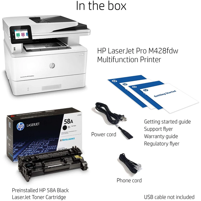 چاپ فایلهای فلش مموری از طریق USB پورت تعبیه شده در جلوی دستگاه ، کپی از دو طرف کارت شناسایی در یک روی صفحه در کنار چاپ کم مصرف و اقتصادی ، این دستگاه را درجایگاهی منحصر بفرد و بی رقیب در بین مصرف کنندگان قرار میدهد. این محصول از سرعت و کشش کاری بالایی برخوردار است. پرینتر لیزری اچ پی M428dw بدلیل نداشتن قابلیت فکس ، برای مصارف سازمانی و اداری که نیاز به فکس نداشته باشند مناسبت است. هم چنین این دستگاه پرینتر لیزری از صفحه نمایش LCD لمسی رنگی برخوردار می باشد. پرینتر لیزری HP M428dw ، می تواند به عنوان یک پرینتر لیزری مشکی اداری روی میز کار قرار گیرد. این پرینتر مجهز به پورت شبکه و وای فای می باشد و با سرعت 38 برگ در دقیقه با رزولوشن 1200×1200 dpi پرینت می گیرد. این پرینتر سه کاره دارای دو ورودی کاغذ که اولی چند منظوره و با ظرفیت 100 برگ و دومی کاست کاغذ 250 برگی است که برای پرینتری با این مشخصات بسیار مناسب است.