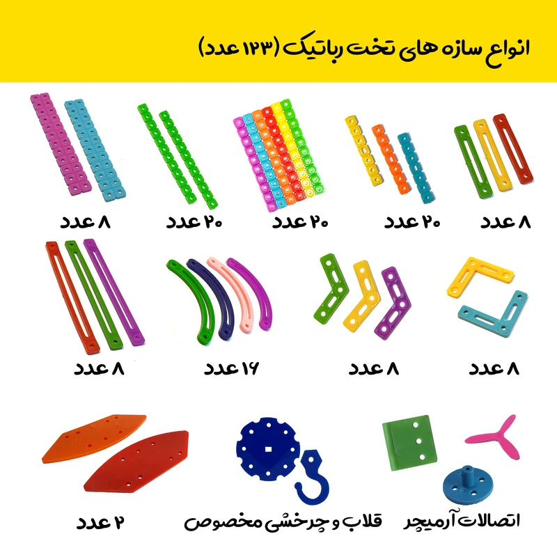 مثل آسانسور ، چرخ و فلک و غیره وارد ساخت ربات های رالی ، فوتبالیست (حداقل 2 مدل مختلف)، آتشنشان ، جنگجو (حداقل 3 مدل مختلف)، لیفتراک ، نقاش ، جرثقیل و غیره… میشوند.این مثال ها تنها گوشه ای از آموزش هایی است که در دی وی دی آموزشی پکیج وجود دارد و دانش آموز