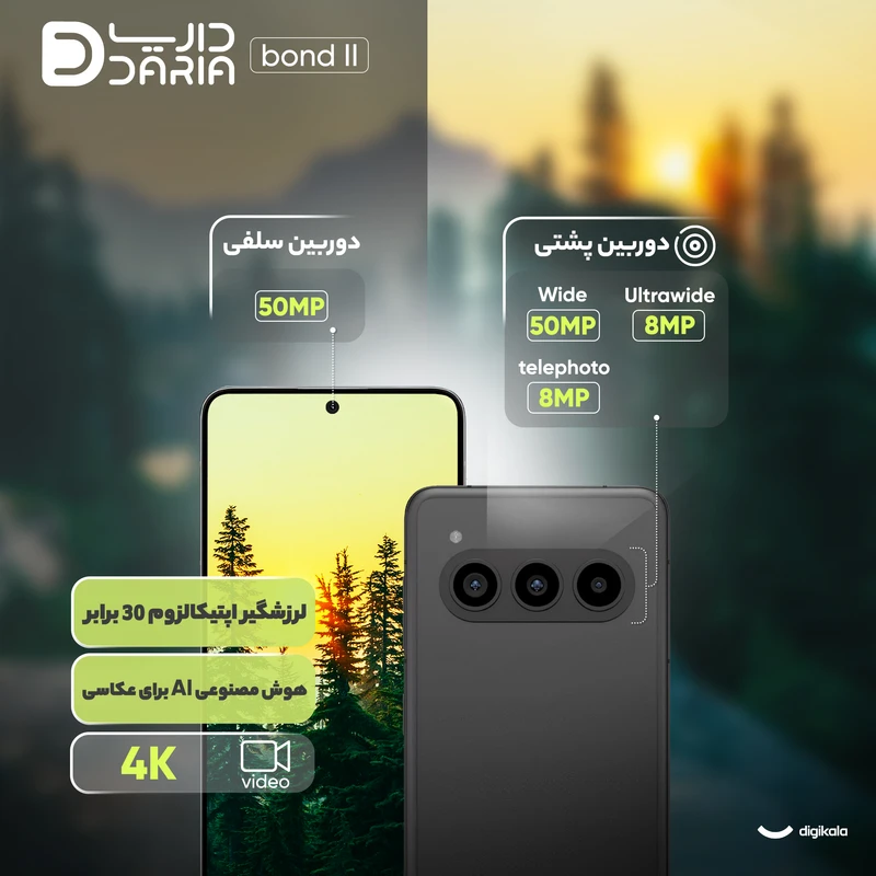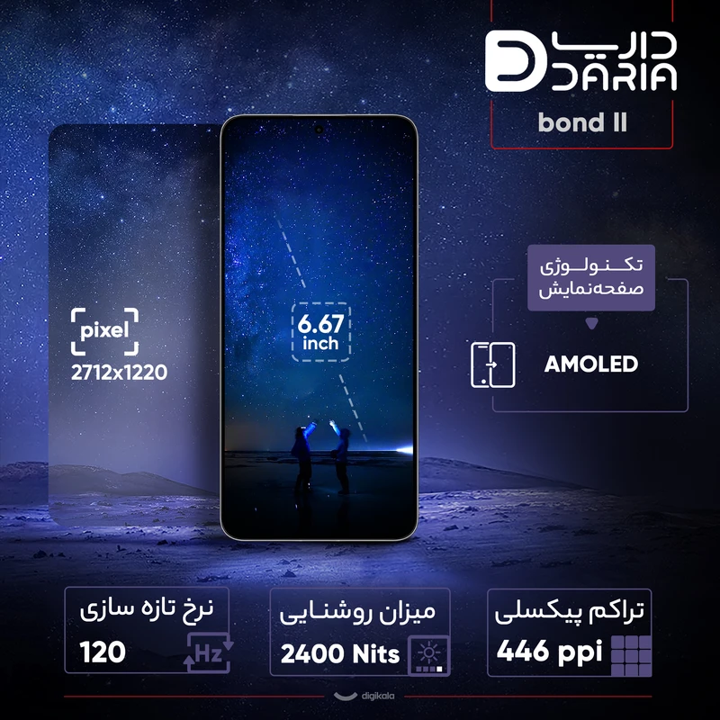 گوشی موبایل داریا مدل bond II دو سیم کارت ظرفیت 512 گیگابایت و رم 12 گیگابایت – به همراه شارژر 66 وات داریا