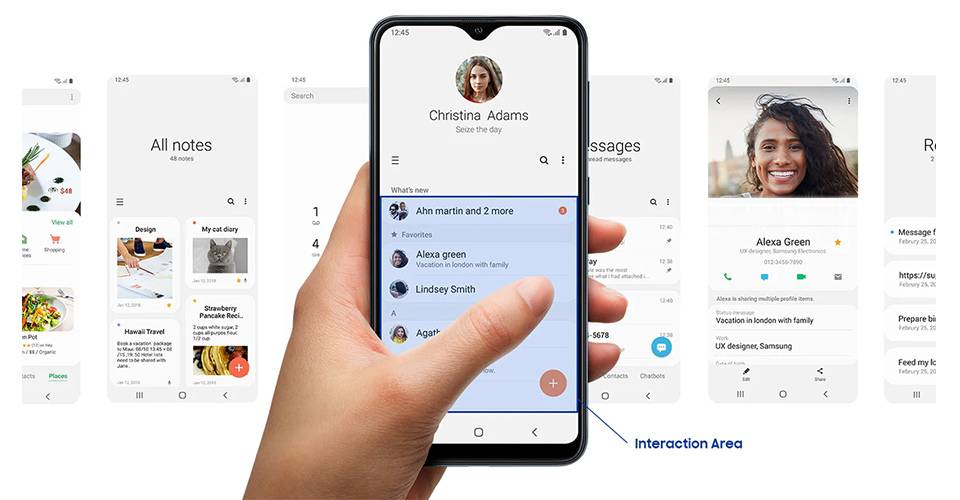 سیستمعامل اندروید Pie، در این محصول شرکت سامسونگ به خدمت گرفته شده است تا از لحاظ نرمافزار کاملاً بهروز باشد. گوشی Galaxy A10 با استفاده از نسخه 1.1 رابط کاربری مخصوص سامسونگ یا همان One UI روانه بازار شده است. این رابط کاربری امکان شخصیسازی زیادی را به کاربر میدهد اما در عوض نرمافزارها و ویجتهای زیادی هم دارد که مجبور خواهید شد آنها را غیرفعال کنید. شکل و ظاهر رابط کاربری این محصول جدید شرکت سامسونگ، تا جای ممکن مینیمالیستی شده و تا حد زیادی به اندروید خالص شبیه شده است. استفاده از حالت کار با یک دست هم در این گوشی قرار گرفته است تا کار با گوشی بزرگ را تا حد زیادی آسان کند. این گوشی دارای حالت گیمینگ است که البته تاثیر چندانی روی قابلیت گیمینگ گوشی ندارد اما کارهایی مانند مدریریت نوتیفیکیشنها را در زمان بازی بر عهده میگیرد. رابط کاربری گوشی دارای حالت شب (Night Mode) است که پسزمینه تیره را برای کاربر به همراه دارد که برای استفاده کنندگان همیشگی شبکههای اجتماعی مناسب است.