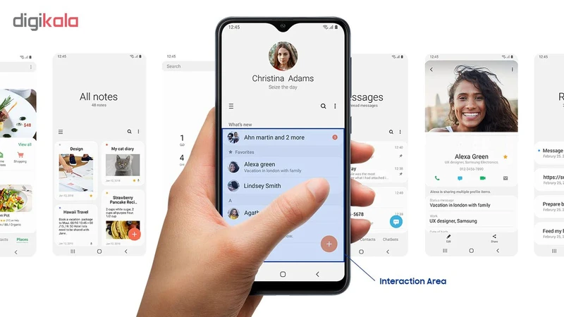 استفاده از طراحی جدید Infinity-V که این روزها با نام طراحی قطرهای روی گوشیهای سری A و M استفاده میشود در این گوشی هم استفاده شده و باعث شده است تا A10 هم به نمایشگری بزرگ، کمی پهن و البته کشیده با نسبت تصویر 19:9 مجهز شود. دلیل نامگذاری این نمایشگر وجود بریدگی یا همان ناچ گوشی به شکل V است. این محصول در قسمت پایین کمی نسبت به بدنه گوشی حاشیه دارد اما حتی این حاشیه کم هم نمیتواند جلوی نامگذاری A10 به عنوان محصولی با صفحهنمایش بی نهایت را بگیرد. پنل نمایشگر این محصول از نوع IPS است که قطعاً نباید انتظار زیادی از آن داشته باشید یا تصور کنید که در برابر تابش نور مستقیم خورشید به اندازه گوشیهای سری S خوب عمل میکند. البته باید بگوییم که اگر نور این گوشی را تا بیشتر حالت خود قرار دهید با میزان نور بسیار مطلوبی روبرو خواهید شد. این گوشی دارای فناوری تنظیم میزان نور با کمک حسگر است که سامسونگ به آن لقب «Adaptive Display» داده است. این فناوری در عمل همان کار حسگر نور را انجام میدهد و در مکانهای پرنور به طور خودکار نور گوشی را زیاد میکند. نمایشگر این گوشی دارای رزولوشن HD است که شاید روی کاغذ چندان مطلوب جلوه نکند اما در عمل رضایتبخش است. البته اگر از گوشی برای مطالعه استفاده کنید، ممکن متوجه شوید که کیفیت تصویر در نمایش متن نسبت به مدلهای گرانقیمتتر کمی کمتر است. البته نقطه قوت این رزولوشن مصرف کمتر باتری است که نباید از کنار آن به راحت گذشت.