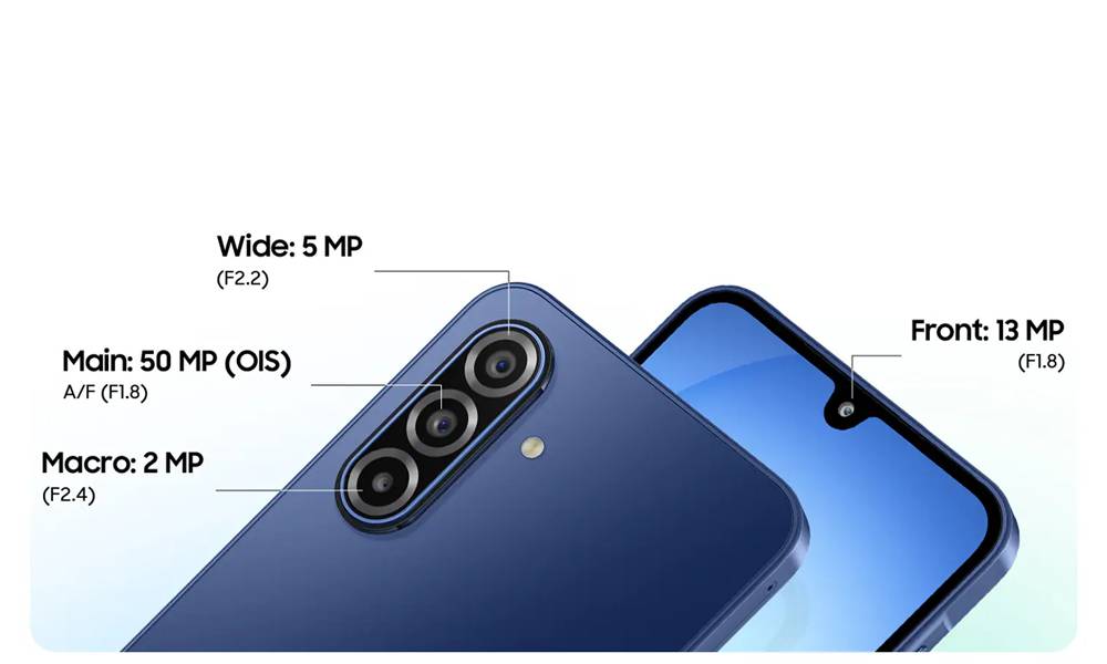 سامسونگ Galaxy A17 را به یک ماژول سهگانه مجهز کرده است. دوربین اصلی 50 مگاپیکسلی با لرزشگیر اپتیکال (OIS) میتواند عکسهای با کیفیتی حتی در شرایط نا متعادل ثبت کند. دوربین فوق عریض 5 مگاپیکسلی برای ثبت مناظر و عکسهای گروهی مناسب است و دوربین ماکرو 2 مگاپیکسلی برای ثبت سوژههای نزدیک به کار میآید.
