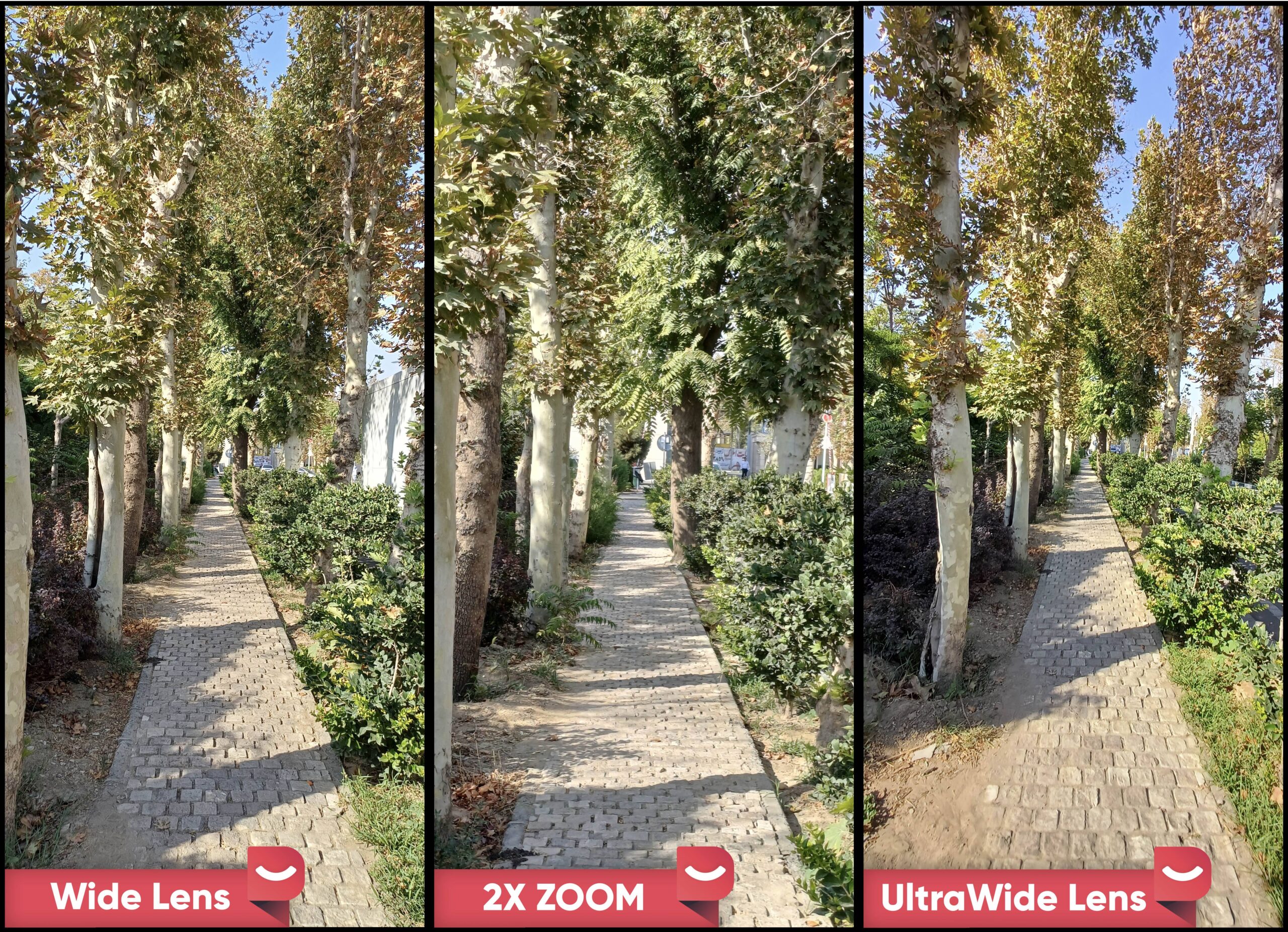 در قسمت پشتی  این گوشی سه سنسور دوربین با رزولوشن 48 مگاپیکسل از نوع اصلی، 8 مگاپیکسل از نوع فوق عریض (ultrawide) و 5 مگاپیکسل ماکرو (برای ثبت تصاویر از فاصله نزدیک) در نظر گرفته شده است. ابتدا با بررسی سنسور دوربین اصلی در نور روز می‌پردازیم. با توجه به خروجی تصاویر باید بگوییم که این سنسور توانست خروجی تصاویر با نمایش دقیق چزئیات، تفکیک رنگ مناسب و داینامیک رنج به نسبت گسترده‌ای را ارائه کند. سنسور دوربین فوق‌عریض هم در زاویه دید معمولی عملکرد بسیار خوبی داشت و از نظر نمایش جزئیات و مخصوصا رنگ‌، تفاوت چندانی باید با خروجی تصاویر دوربین اصلی ندارد. اما در زاویه دید گسترده‌تر درست است که جزئیات به‌خوبی نمایش داده شده و داینامیک رنج مناسبی را شاهد بودیم، اما در زمینه کنترل نور می‌توانست عملکرد بهتری داشته باشد.