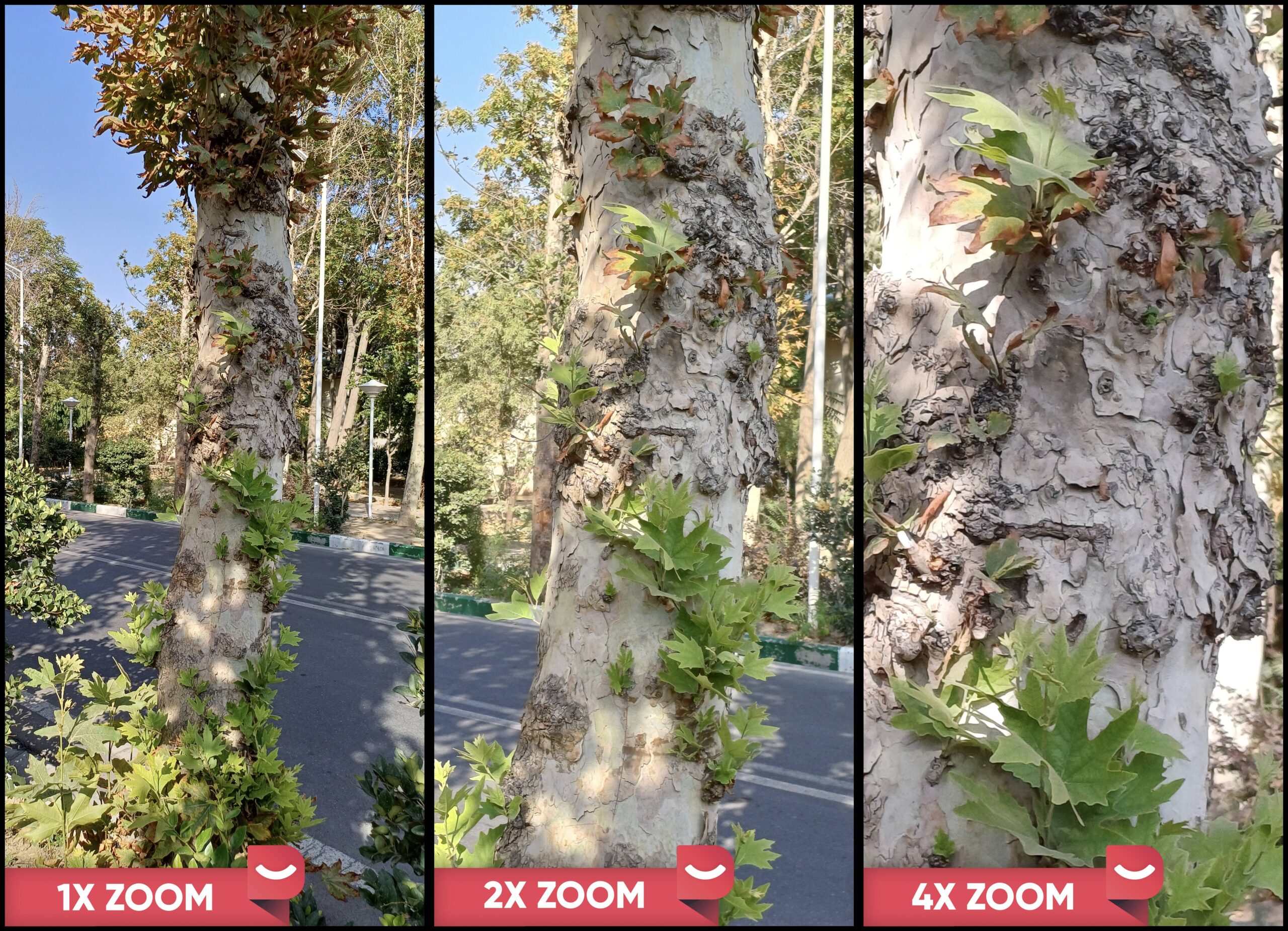 در حالت زوم هم با توجه به خروجی تصاویر، باید بگوییم که می‌توانید تا زوم دو برابری روی خروجی تصاویر باکیفیت، حساب باز کنید. همانطور که مشاهده می‌کنید خروجی تصاویر در زوم دو برابری در نمایش جزئیات و به‌خصوص رنگ‌ها جذاب با رنگ و لعاب مناسب، عملکرد بسیار خوبی دارد. چنین اتفاقی سبب شده تا در عکاسی پرتره چهره عملکرد خوبی داشته باشد. در حالت زوم چهار برابری هم خروجی تصاویر به نسبت قابل قبولی را شاهد هستیم، اما نباید توقع نمایش دقیق جزئیات را داشته باشیم.
