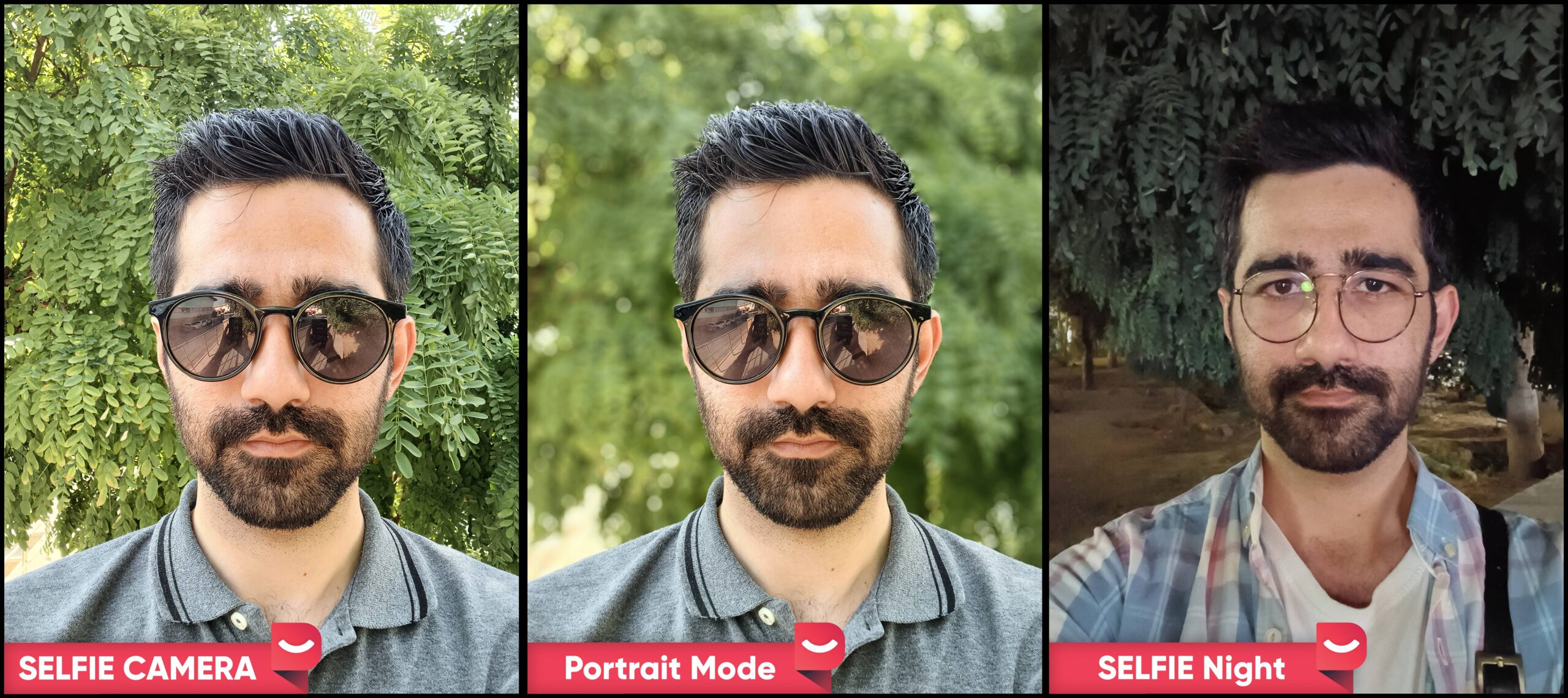 در خصوص دوربین سلفی 13 مگاپیکسل این گوشی باید بگوییم که در عکاسی نور روز به‌خوبی توقعات شما را در حد و اندازه یک گوشی میان‌رده برآورده می‌کند. در نور روز این سنسور توانست خروجی تصاویر با نمایش مناسب جزئیات را ارائه کند و در حالت پرتره هم پس‌زمینه به‌خوبی بوکه شده و از طرفی پرتره چهره چندان تداخلی با پس‌زمینه بوکه شده ندارد. در نور شب اما نباید چندان حسابی روی ارائه خروجی تصاویر با نمایش دقیق جزئیات روی این سنسور دوربین سلفی باز کنید. البته نباید فراموش کنیم که دوربین اصلی  و سلفی این گوشی توانایی فیلمبرداری 4K را دارند و برای یک چنین گوشی میان‌رده‌ای اتفاق بسیار خوبی است.