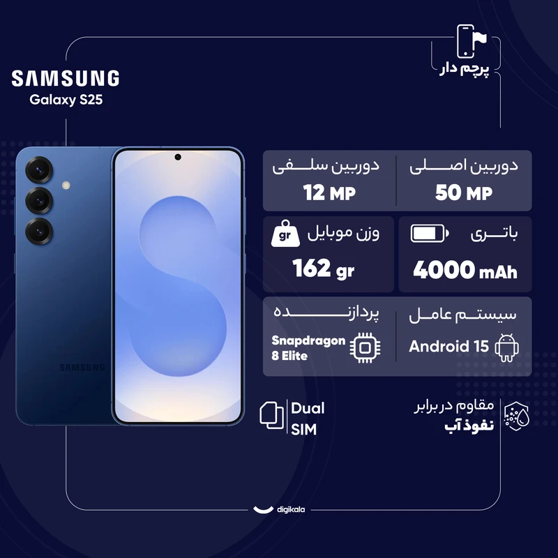 سامسونگ گلکسی S25 پلاس یکی از برجسته‌ترین و پیشرفته‌ترین پرچمداران این برند است که در سال 2025 معرفی شد. این گوشی با طراحی زیبا و بدنه‌ای مقاوم از جنس شیشه و فریم آلومینیومی، علاوه بر جذابیت ظاهری، استاندارد IP68 را برای مقاومت در برابر آب و گرد و غبار به ارمغان می‌آورد. ضخامت دستگاه تنها 7.3 میلی‌متر و وزن آن 190 گرم است که احساس راحتی و سبکی در دست را به کاربر منتقل می‌کند.