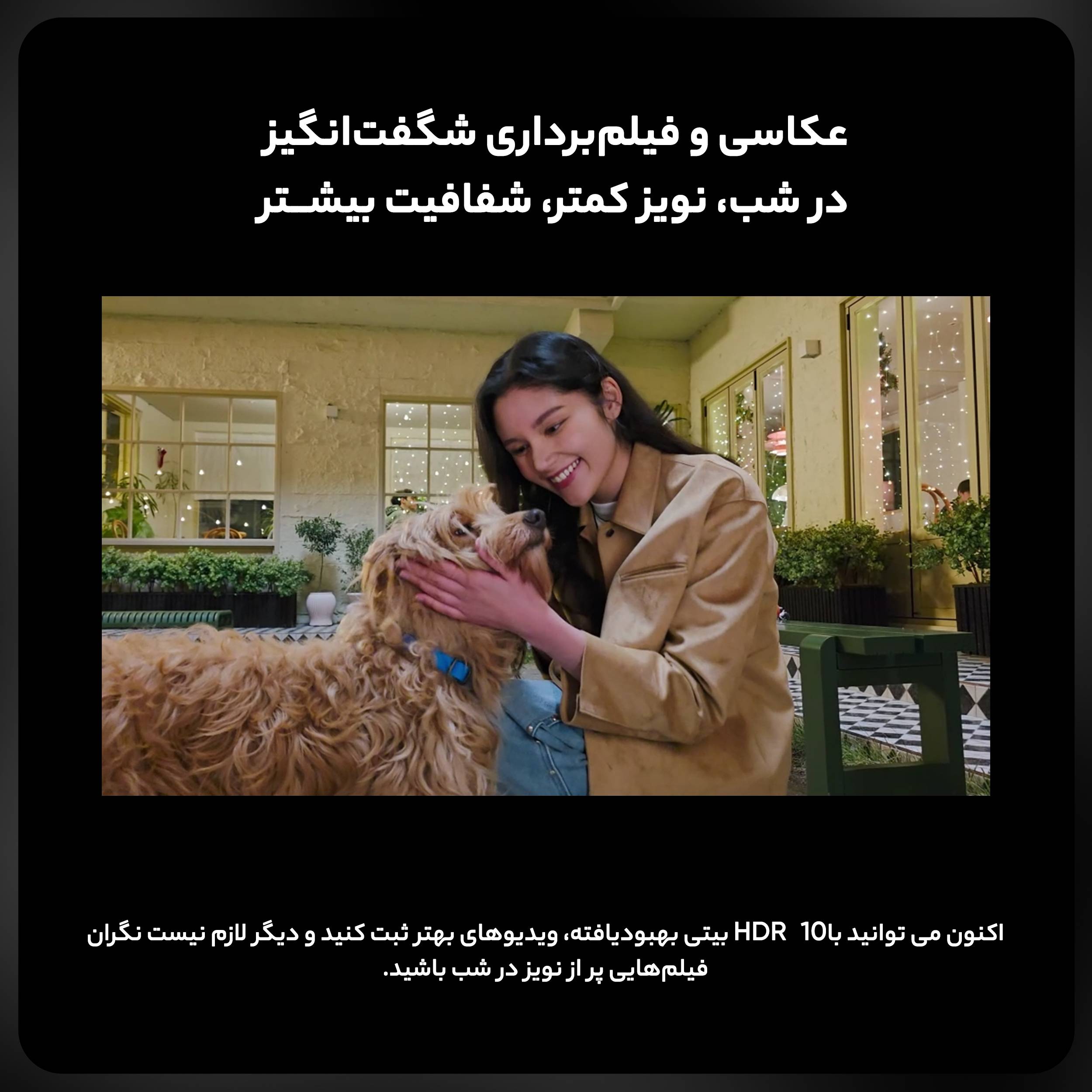 رزولوشن 8K با سرعت 24 و 30 فریم بر ثانیه رزولوشن 4K با سرعت 24، 30 و 60 فریم بر ثانیه رزولوشن 1080p با سرعت 30، 60، 120، 240 و 960 فریم بر ثانیه مجهز به لرزشگیر تصویر ژیروسکوپی پشتیبانی از HDR10+ |