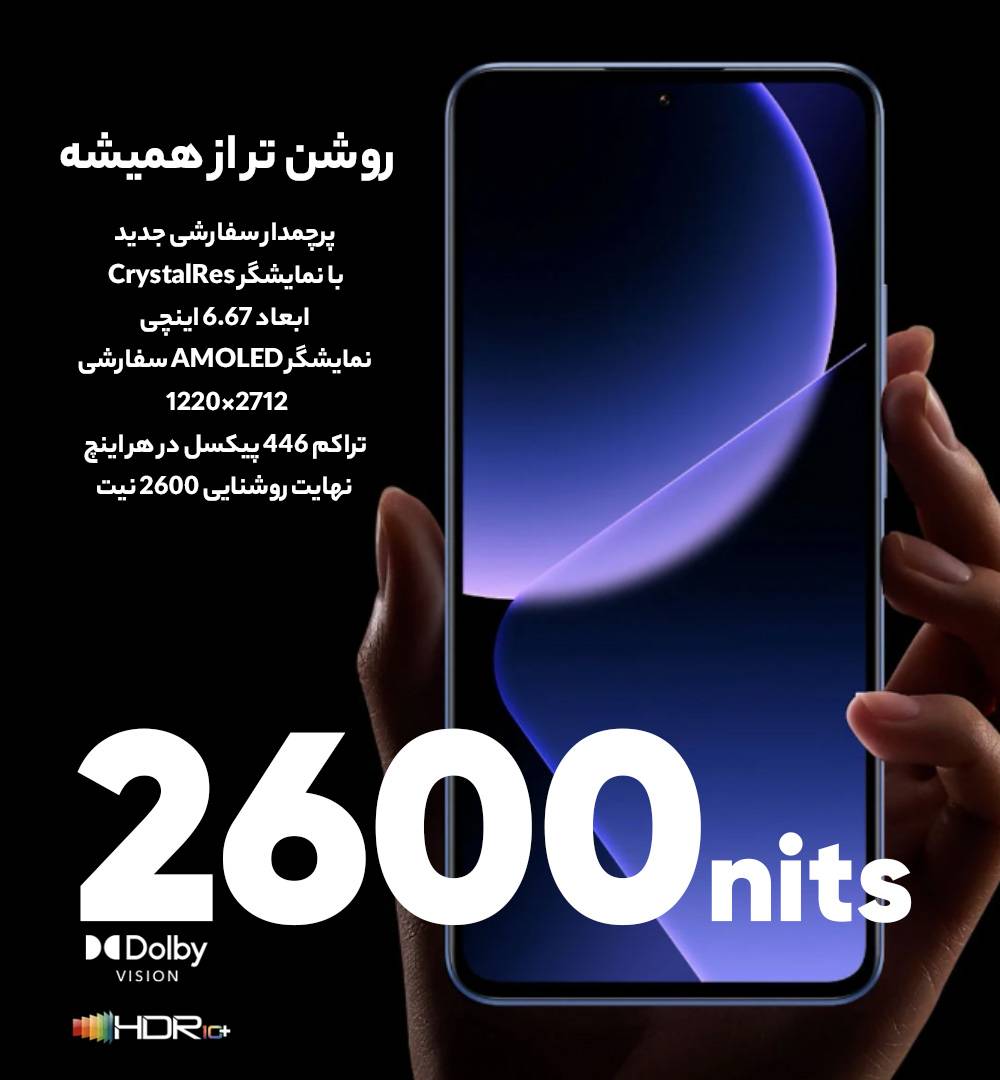 بدون هیچ تعریف اضافی باید قبول کنیم که گوشی‌های هوشمند شیائومی چه در زمینه میان‌رده و پرچمدار توانسته‌ است عملکرد درخشانی را نشان دهد و گوشی موبایل شیائومی مدل 13T Pro یکی از محصولات بسیار با‌کیفیت این شرکت است که از مشخصات فنی قدرتمندی بهره برده است. با توجه به قیمت در نظر گرفته شده و مشخصات فنی، باید بگوییم که با یک قاتل پرچمدار رو‌به‌رو هستید. صفحه‌نمایش 6.67 اینچ با رزولوشن 1220×2712 پیکسل از نوع امولد با توانایی نمایش 446 پیکسل این گوشی در کنار توانایی ارائه نرخ بروزرسانی 144 هرتز و حداکثر روشنایی 2600 نیت (nits) نشان از آن دارد که با صفحه‌نمایش قدرتمند و بسیار با‌کیفیتی روبه‌رو هستید که حتی توانایی ارائه عملکرد قدرتمند‌تری به نسبت برخی از پرچمداران گران‌قیمت دارد. در قسمت پشتی هم شاهد حضور یک سنسور دوربین اصلی با رزولوشن 50 مگاپیکسل در کنار سنسور 50 مگاپیکسل از نوع تله‌فوتو با قابلیت زوم دو برابری اپتیکال و سنسور 12 مگاپیکسل فوق‌عریض (ultrawide) در نظر گرفته شده است. حضور این سنسور‌های دوربین قدرتمند سبب شده تا توقعات شما به‌خوبی در حد و اندازه یک گوشی پرچمدار در عکاسی نور روز و نور شب بر‌آورده شود. از طرفی در بخش فیلمبرداری هم با توجه به توانایی ضبط ویدیو با حداکثر کیفیت 8K، با خیال راحت روی این گوشی حساب باز کنید. دوربین سلفی 20 مگاپیکسل هم در نور روز و نور شب عملکرد مناسبی دارد، اما نباید توقع عملکردی در حد و اندازه یک گوشی پرچمدار را داشته باشید. شیائومی 13T Pro به یکی از قدرتمند‌ترین پردازنده‌های شرکت مدیاتک، یعنی دیمنسیتی 9200 پلاس مجهز شده است که با‌راحیت هرچه‌ تمام‌تر از پس اجرای سنگین‌ترین بازی‌های روز جهان برمی‌آید. باتری با میزان ظرفیت 5000 میلی‌آمپر‌ساعت که زمان آماده به‌کار بسیار خوبی را به ازای هر بار شارژ به شما می‌دهد، در کنار پشتیبانی از فناوری شارژ سریع 120 وات، از دیگر مشخصات در نظر گرفته شده برای این گوشی هوشمند است. در مجموهع باید بگوییم که اگر به دنبال خرید گوشی هوشمندی هستید که توانایی رقابت با پرچمداران گران‌قیمت را داشته باشد و از طرفی با قیمت ارزان‌تر به نسبت پرچمداران داشته باشد، بدون شک شیائومی 13T Pro به‌عنوان یک قاتل پرچمدار گزینه بسیار مناسبی است.